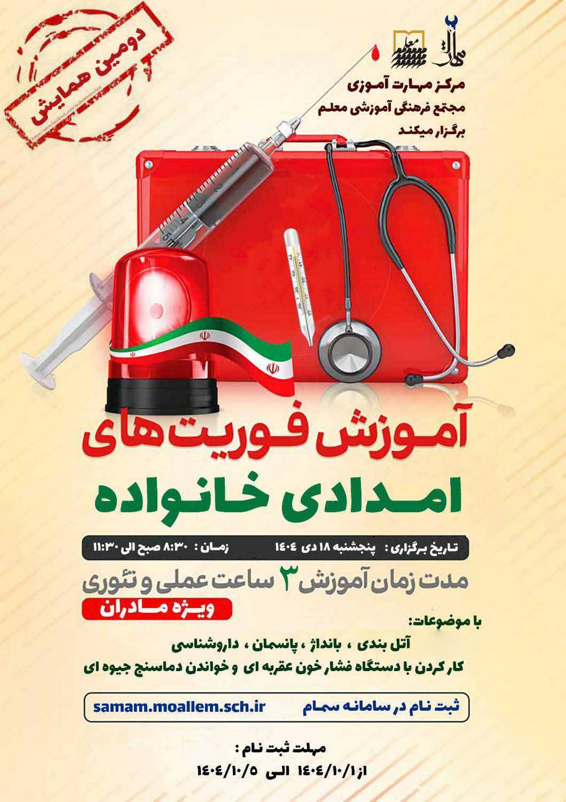 با توجه به استقبال بالا از دوره قبلی همایش فوریت های امداد خانواده و درخواست اولیای گرامی دومین کارگاه آموزشی با این محور برگزار می گردد.